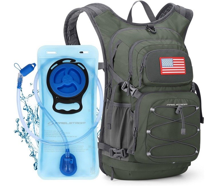 | Mochila de hidratación para senderismo y ciclismo Maelstrom con depósito de agua de 2 Litros, válvula de mordida de alto flujo, mochila ligera para hombre y mujer |